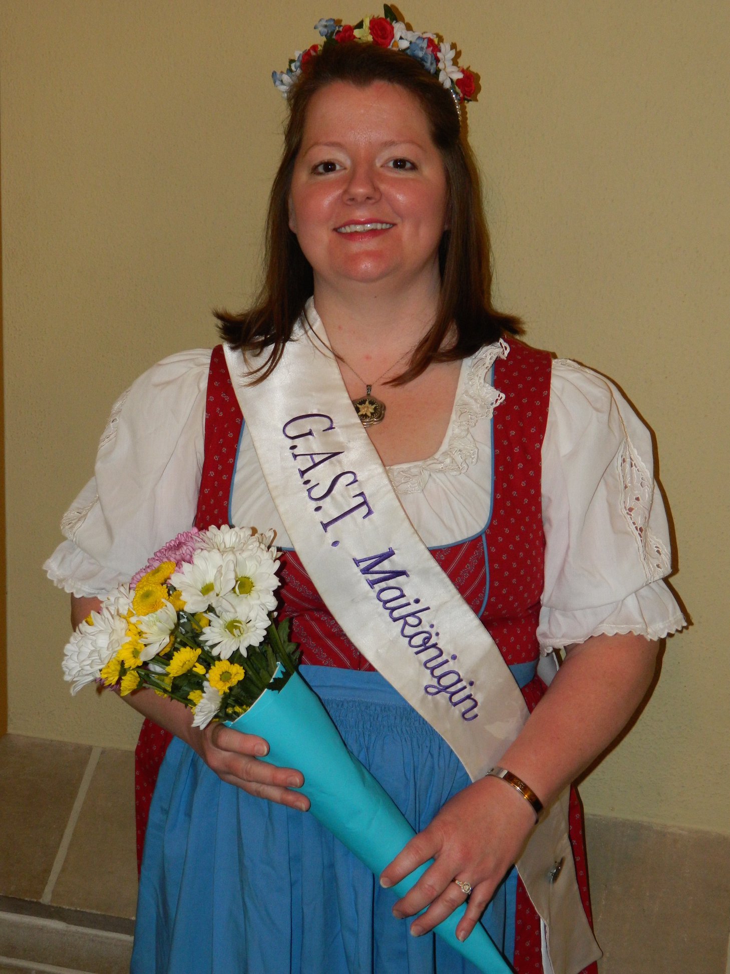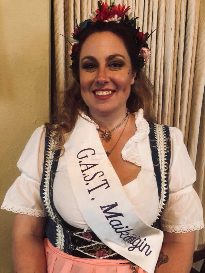 At GAST, the May Queen, is an integral part of the Society. Her coronation is a tradition at GAST's Maifest, Germanfest, and she serves as a representative for the Society throughout the year wherever needed. This is more often than not at the Societies events and parties but also at non-Society events such as Tulsa's Oktoberfest. The May Queen at GAST also hosts two unique and special parties for children. One in April around the time of Easter and one in December after Christkindlmarkt.